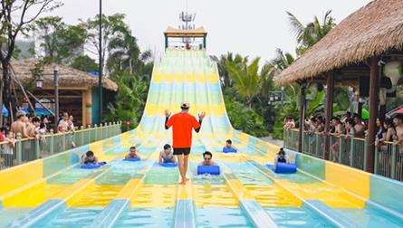 适游人群:本项目为2人组合滑道,适合身高1.3-1.9米、单人体重90KG以下、双人总体重180KG以下的游客游玩,60周岁(含)以上的长者谢绝进入。