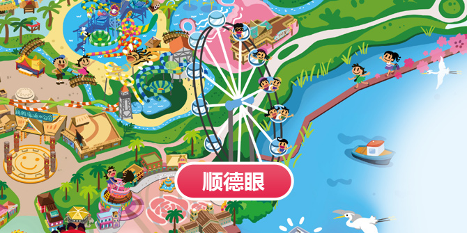 “顺德眼”是南中国首座双立柱全拉索设计的摩天轮。不仅观赏性更强,也更具安全性,理论上可以抵抗12级飓风。顺德眼转一圈约21分钟,摩天轮的吊舱是纯球形全景舱,整个座舱悬在轮的外面,坐上去视野更开阔,欢乐海岸PLUS、顺峰山公园都可以尽收眼底。