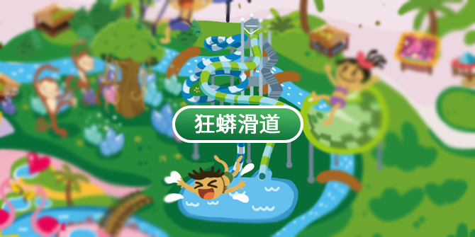 长185m,高17m的狂蟒滑道,从玩法上给游客们带来了一种新体验,游玩者到达塔口后,乘坐漂流筏,从高塔上发射进入开放式滑道中,体验离心力不断加速与旋转带来的刺激。