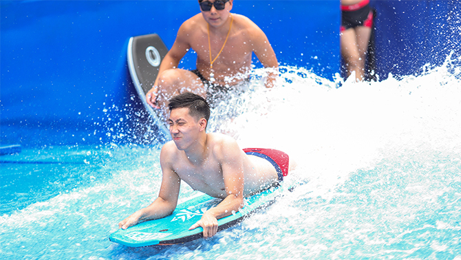 亚洲最新彩虹隧道:在长140m,高15m的太空隧道中,您将开始一场充满视觉冲击的奇妙时空之旅。弯曲又迷幻、充满未知刺激的七彩回环,绚丽神秘又充满心跳的玩水趣浪,一定能让你体验到名副其实的时光隧道。